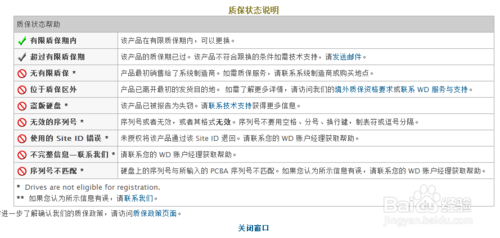 8、不同的质保状态有不同的说明,看下面质保状态说明。