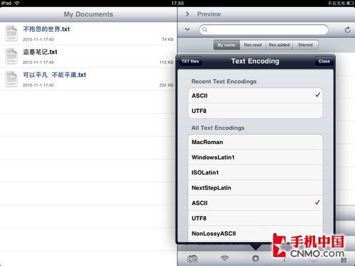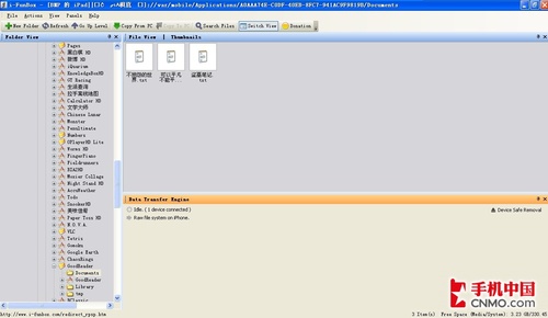 然后将这些批量转换完格式的TXT文件,通过iFunbox或91手机助手等进放在GoodReader的Documents文件夹里,使用GoodReader再打开就正常识别。