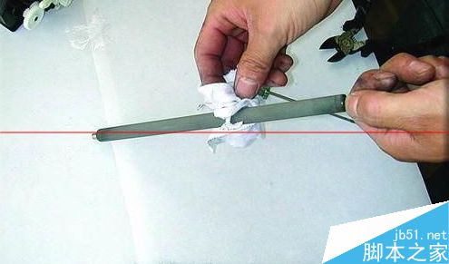4、用斜口钳把顶出来的小铁销轻轻拔出。