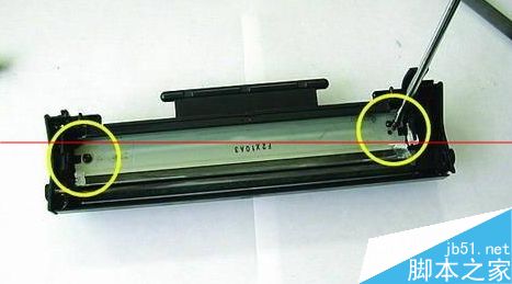 5、用十字螺丝刀拧开硒鼓另一头的螺丝。