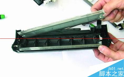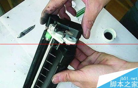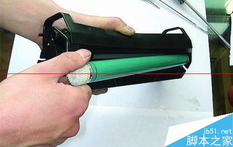 11、取出显影仓上的磁辊,然后用布擦去磁辊上的碳粉。