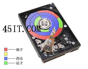 1、观察上图,当硬盘读取文件“橘子”时,磁头需划过图中的阴影区域,但其中有一部分并不是“橘子”所在的扇区,因此,和读取连续的文件比起来,读取碎片“橘子”时,硬盘增加了等待盘片旋转到指定扇区的潜伏期和磁头切换磁道所需的寻道时间。同理,在写入数据时,也会因无法将数据写入到连续的扇区中而降低速度。