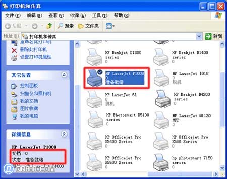 注 :正确的打印机状态:“文档”为“0”,“状态”为“准备就绪”。