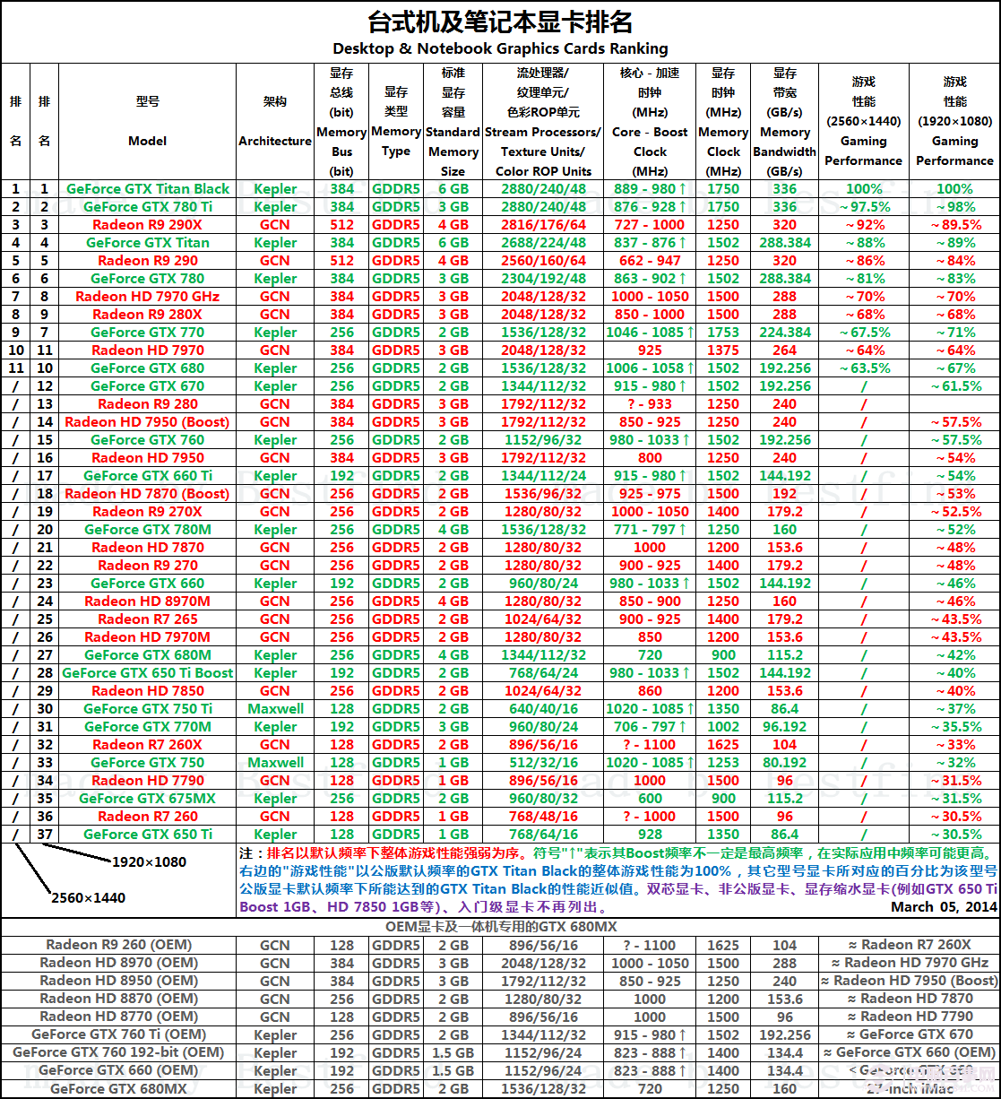 最新2014年台式及笔记本显卡排名图(点击查看大图)
