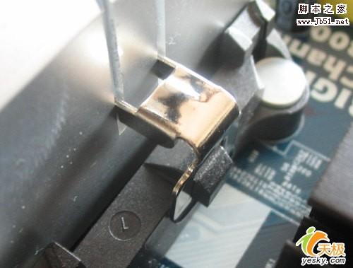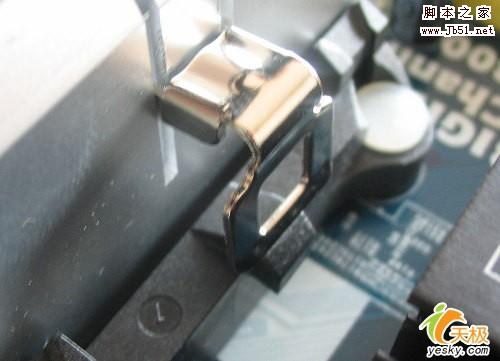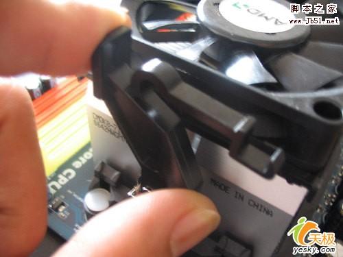 确认CPU与插座紧密结合后,我们再反方向将拉杆扣死(这个步骤需要大家微稍用点力),即完全了CPU与插座的安排过程。接下来,我们就需要安装散热器了,安装散热器的过程与Intel完全不同,大家可要看仔细了。