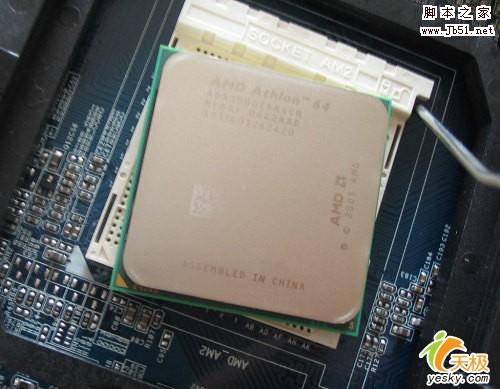 安装CPU完毕后记得把金属棍按下,以固定CPU。在安装散热器之前不要忘记在CPU上抹上适量的散热硅脂。