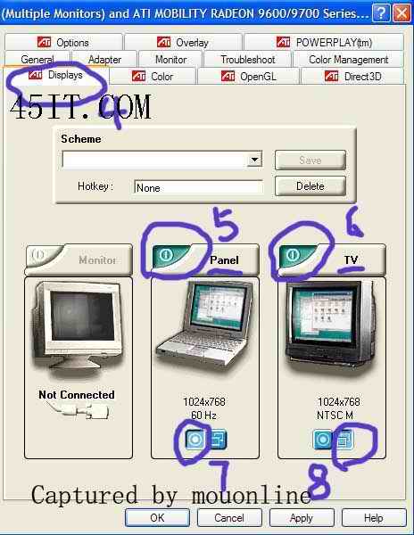 7,和8,是相呼应的! 你只要在我画的圈圈里点一下就可以了! 意思是说, 笔记本是你的第一显示器, 电视是你的第二显示器!