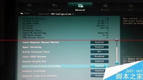 找到Intel Virtualization Technology英特尔虚拟化技术 选项,设置为Enabled开启,再F10保存退出即可。这款CPU支持VT-x,但这款主板却没有这个选项,至少目前4404版本的BIOS设置中没有。