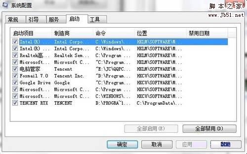 在开始菜单中的“搜索程序和文件”里输入“msconfig”,切换到“启动”项,将“msconfig”的启动项勾选上就可以了。
