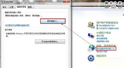 然后我们可以看到有“更改键盘”和“安装/卸载语言”两个按钮,选择第一个“更改键盘”,打开“文本服务和输入语言”窗口。