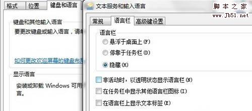 接着选择“语言栏”选项卡,如果发现语言栏是处于隐藏状态,就说明我们找到症结所在了。将语言栏调成“悬浮于桌面”或“停靠在任务栏”状态就可以了,现在再看就会发现输入法图标又回来了。