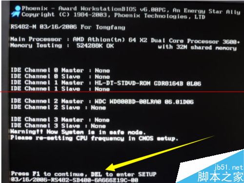 5、合上机箱后,打开计算机电源开机,待出现第一屏幕画面时,按相应的键进入CMOS界面。