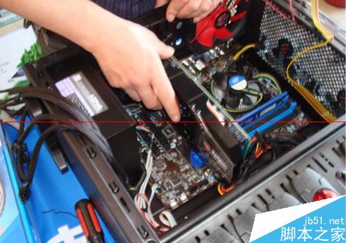 4、安装显卡时,将显卡平放并缓慢插入到专用显卡插槽或PCI插槽中,此时需要注意金手指的接触情况,确保PCI插槽和显卡接触良好。