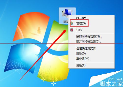 5、成功删除以后,我们右键单击桌面的【计算机】图标,然后单击选择【管理】选项。如下图所示。