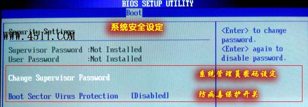 本选项可以开启Bios防病毒功能,默认值为关闭“Disabled”。