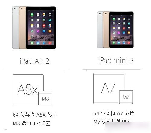 1、处理器。iPad Air2处理器采用了比iPhone6更先进的A8X处理器,而iPad mini3的处理器仍停留在A7。