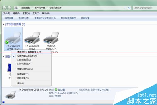 2、右击FX DocuPrint C3055打印机图标,选择【查看现在正在打印什么】,如下图