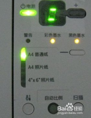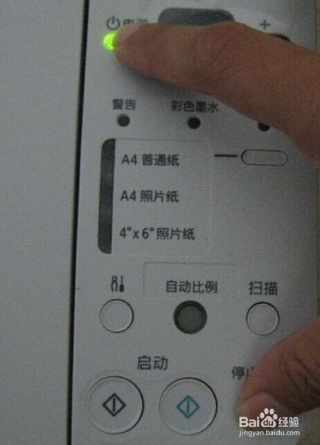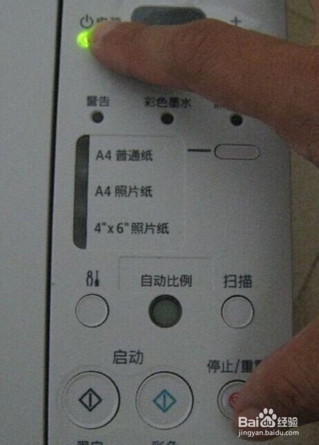 2、等打印机启动,按住 电源键 不要放手,然后松开 停止/重置 键。