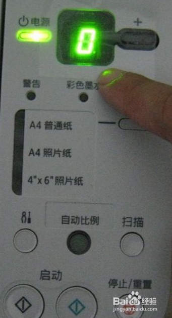 3、然后再按两下 停止/重置键。同时松开 电源健和停止/重置 键,启示完毕,打印机显示为”0″。(如果不是显示为“0”,请关机重新操作。)