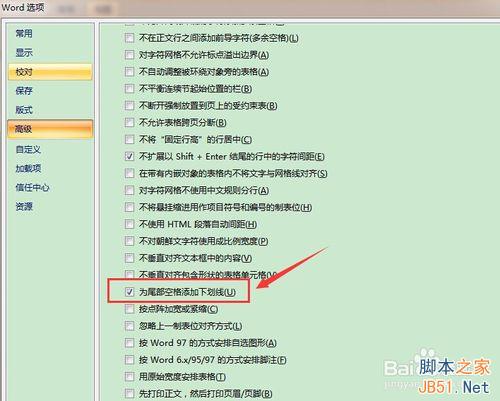 4、找到为“尾部空格添加下划线” 前的面勾,勾上。然后点击确定 保存设置