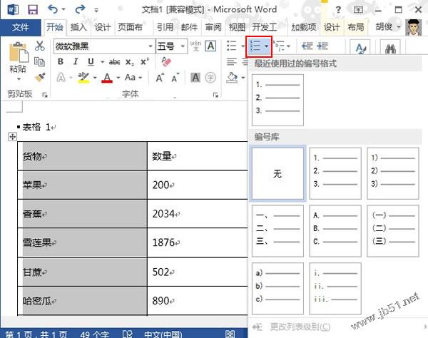 ②随便选择一种编号样式,这里我们的目的只是要知道有多少行而已,拖动滚动条,到最后一行表格,通过编号我们就知道有多少行了。