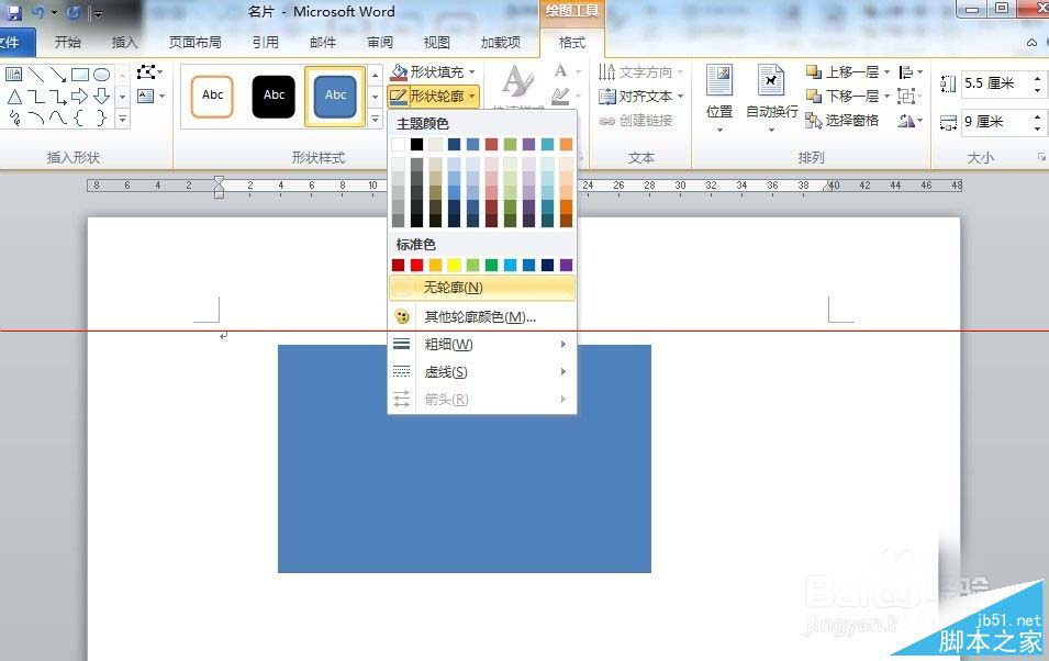 答:1、(1)在“插入”选项卡下的,点击“形状”,选择矩形。 (2)绘制出一个如下图所示的矩形图形,在格式的大小设置区域设置矩形的长宽 2、名片的背景颜色可根据个人喜好进行设置。 (1)在此实例设置“形状轮廓”为无轮廓,“形状填充”为“橙色,强调文... >>详细
