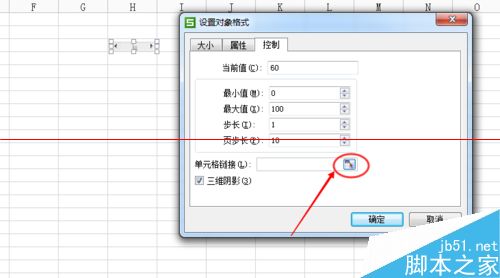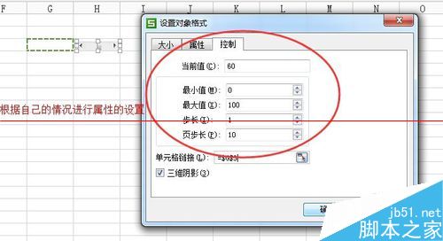 7、选中关联滚动条的单元格时候,我们就根据自己的需要对滚动条的属性等进行设置。