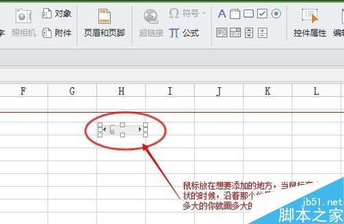 4、鼠标放在想要添加滚动条的单元格上方,当鼠标变成+字样的时候,可以画出自己想要的滚动条形状。