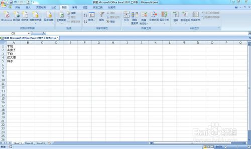 1、打开excel2007版本,名单就在这里,姓名要排序还是比较头疼的,并经软件是国外的呢