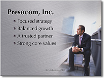 我经常在幻灯片中使用人物图片,因为人物照片有助于增加观众与幻灯片之间的情感联系。如果相片处于次要地位,我就降低不透明 性,并在Photoshop中增加一个高斯模糊或动态滤镜;如果相片位于主要区域,我希望观众注意它(例如产品图片),那么图片可以变得更为显著,且不必 要多少(或根本不需要)文字说明。