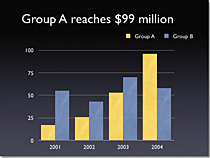 经常问自己这个问题:“我需要多少细节?”一般制作者害怕在幻灯片的图表中加入过多的数据。有几种以图表形式显示数据的方法;以下是需要紧记的工具: