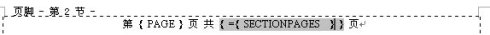 插入后域代码变为“第{PAGE}页 共{={SECTIONPAGES} } 页”。这样总页数的问题就解决了。