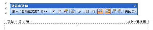 点击“页眉和页脚”工具栏中的“链接到前一个”图标,页脚右上角的“与上一节相同”消失。