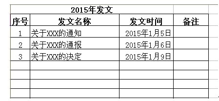 2、制作名为“2015年收发文”的excel表格 ,表格内容如下