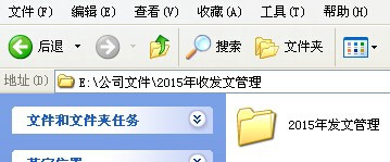 现有2015年发文文件整理归档后放置于“2015年收发文管理”文件夹的“2015年发文管理”,如图
