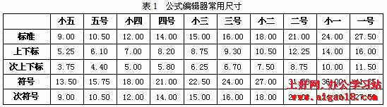 所以我们使用公式时需要根据正文字号来更改公式字号。由于公式字号全为西文字号,其与中文字号对应关系需查阅取得。同时其中“上下标”等均要与“标准”的字号成比例比较复杂,如下提供一些常用的尺寸设置: