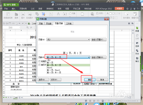 7、这里有各种页脚设置,点击这些图标,查看是否是自己喜欢的。然后点击“确定”。
