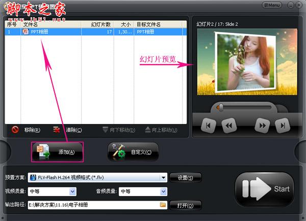 现在可以在软件主界面上点击“start”按钮,然后开始转换PPT相册为视频相册,在转换的过程中我们可以上上网做点别的事情,等待视频相册的出炉。