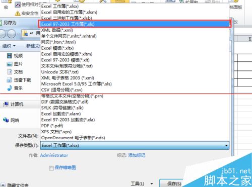 4、如果不选择启用宏的工作簿.xlsm来保存,还可以选择97--2003的格式来保存,这旧版本的格不区分内容是不是有宏之类的存在!