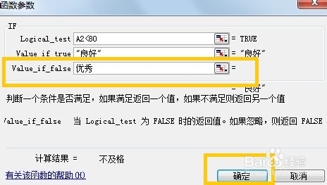 同样的方法,设置良好和优秀,如果你后面还要再继续分的话,也可以继续嵌套,那么第三行就不要写优秀了。
