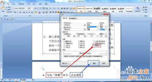 勾选“隐藏”命令,点击确定