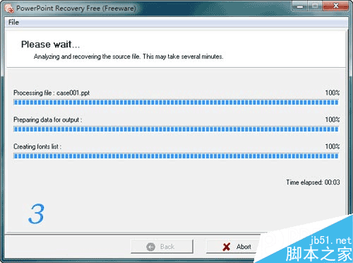 3、点选”next”,下一步,PPT恢复软件开始修复PPT文档。