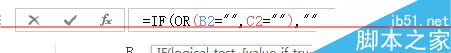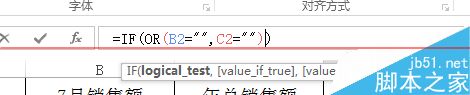 4、编辑栏中输入 =IF(OR(B2="",C2="")) 以确定月销售额和销售总额是否有空白。