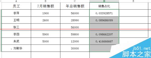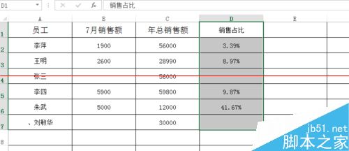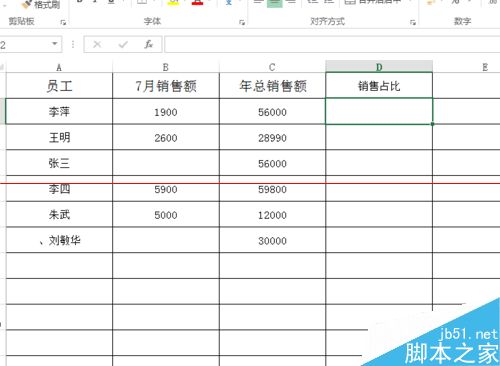 1、打开一个工作簿,要计算某月的销售占比,输入销售占比标题。