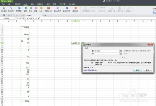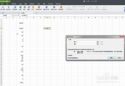 选择“其他函数”中的“统计”项中的“count”函数,会弹出一个对话框,如图