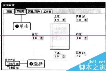 弹出“页面设置”对话框,切换至“页边距”选项卡,在“居中方式”选项区域中选择“水平”复选框。