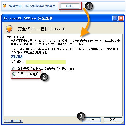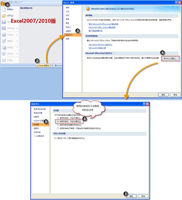 因此,在打开这些Excel程序文件之前,您需要先对您的Excel宏安全性进行设置(设置永久有效,在同一台电脑上无需再次设置)