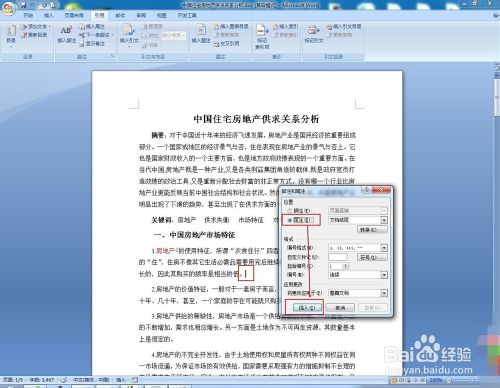 1、首先我们先打开一篇文档,把光标放在我们需要注释的字后面。这里我选择的是房地产三个字。然后引用,在点击脚注边上的按键,如图所示。