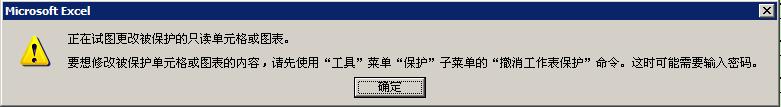 到这里锁定单元格就已经设置完毕了!现在你可以回到Excel表格中看看,刚才被我们锁定的单元格貌似不可以编辑和修改了,每次编辑它都会提示:“正在视图更改被保护的只读单元格或图标”。如果想重新对锁定的单元格进行编辑或修改,单击菜单栏的“工具”中的“保护”下的“撤销工作表保护”,在窗口中重新输入设置的密码,即可撤销工作表的锁定。