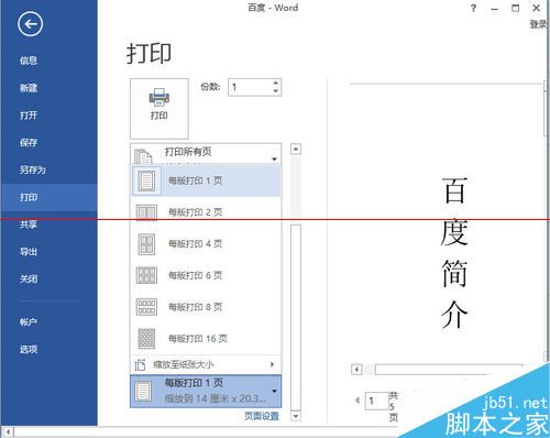 word2013 一张A4纸怎么设置打印多页文档?